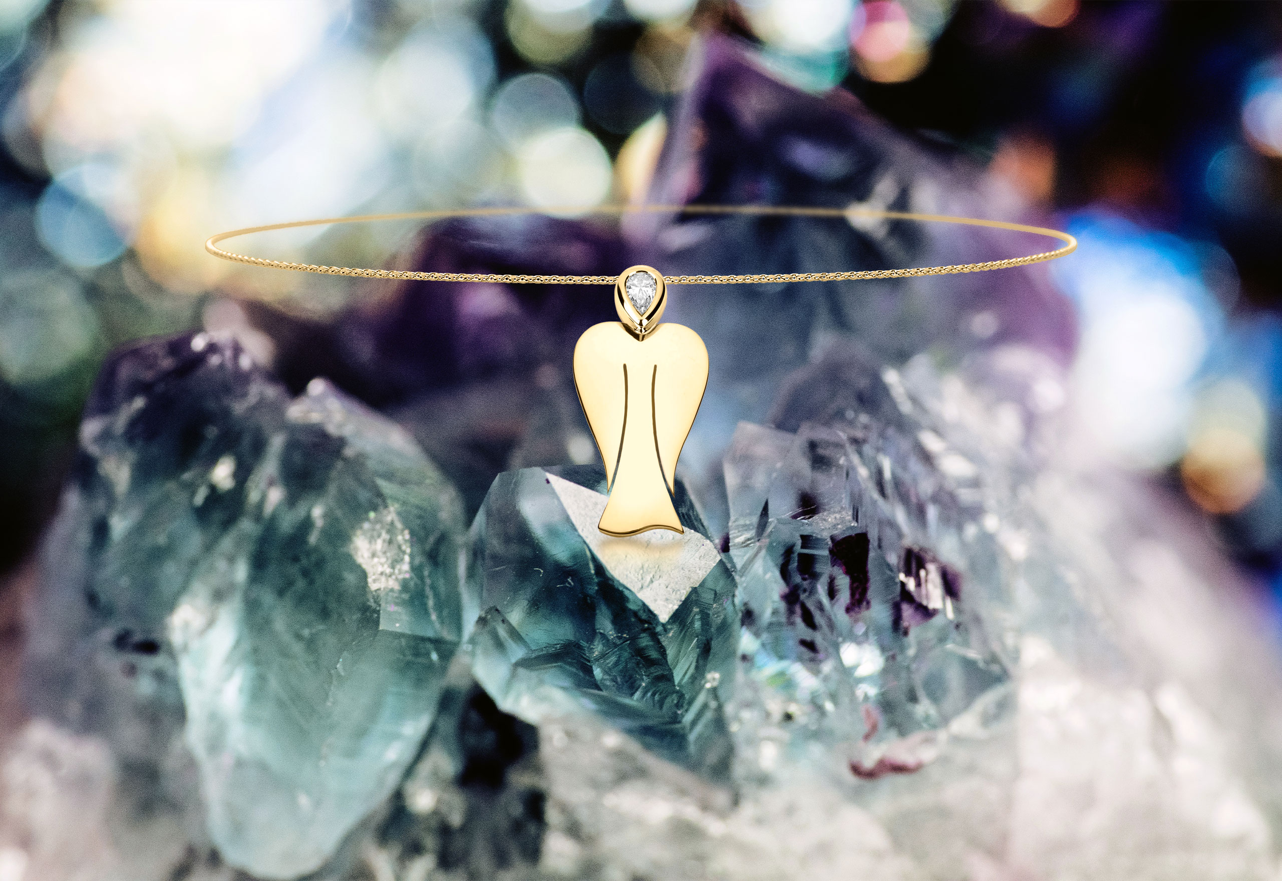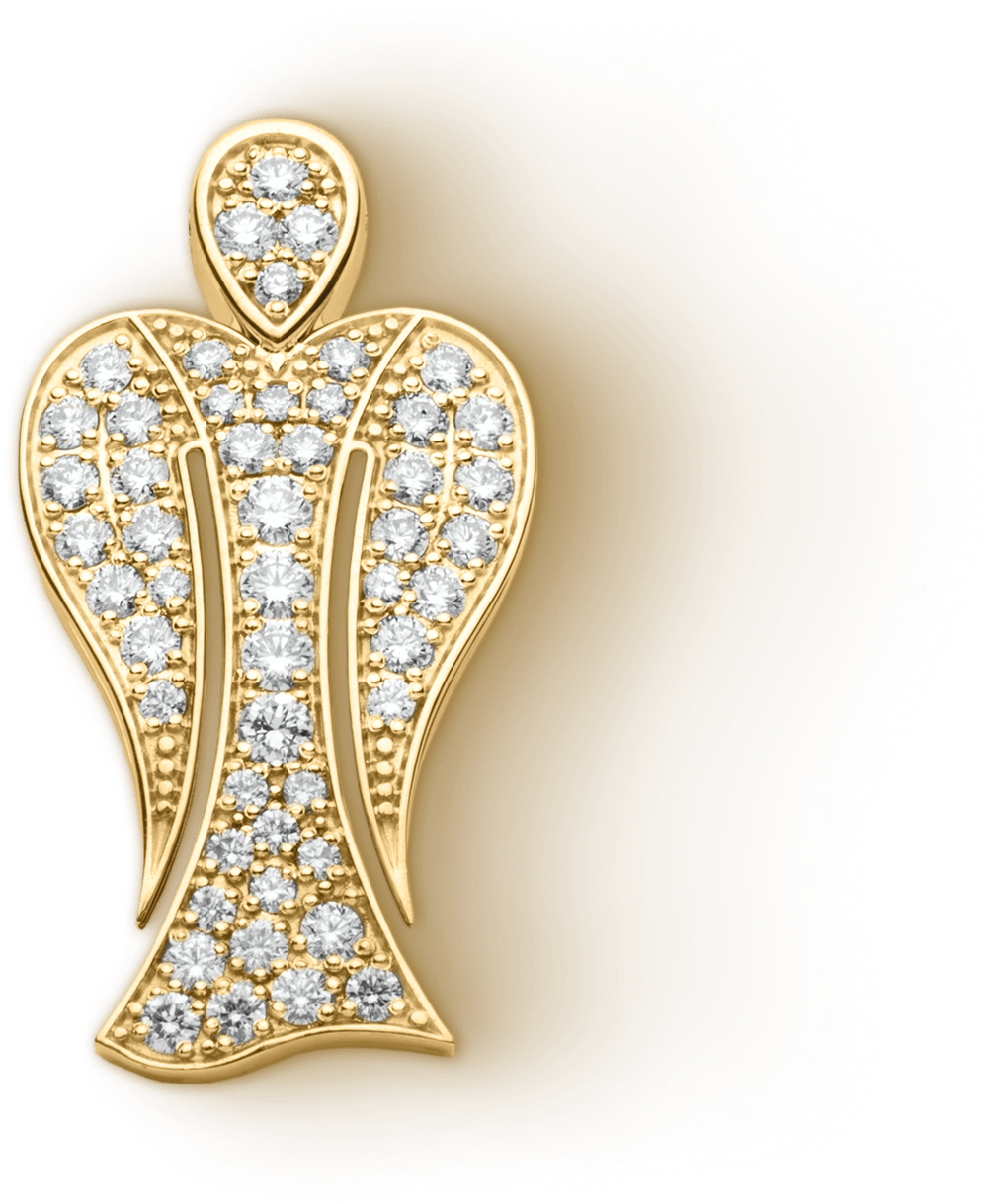 Farbige Edelsteine, edel gefasst in Gold und Silber, verleihen jedem Engel seine einzigartige Strahlkraft und Symbolik.