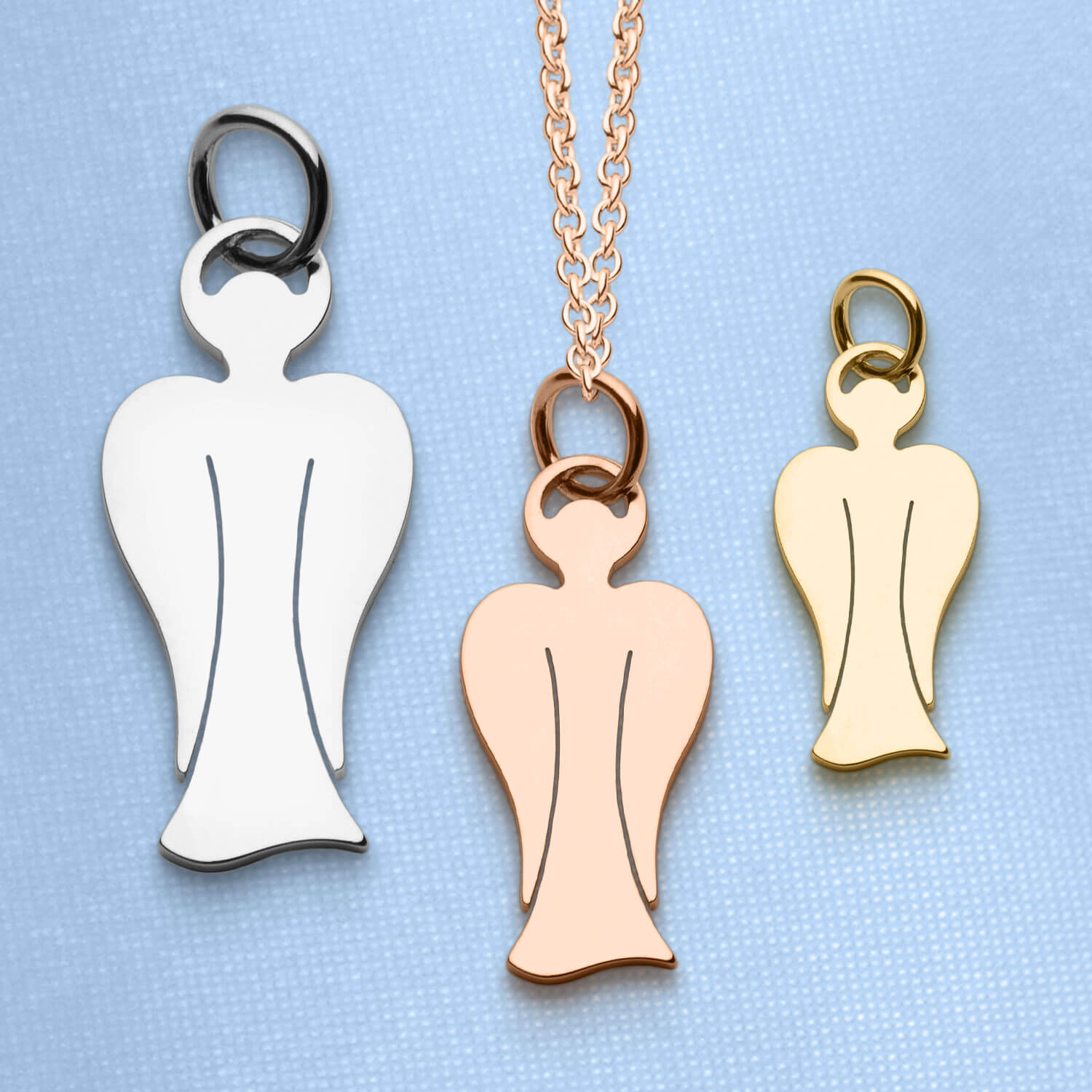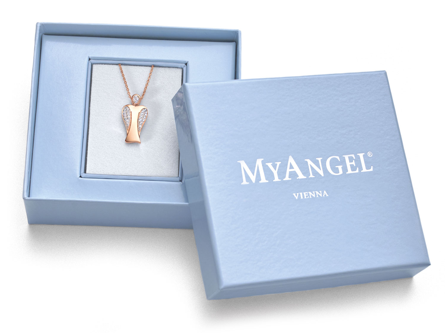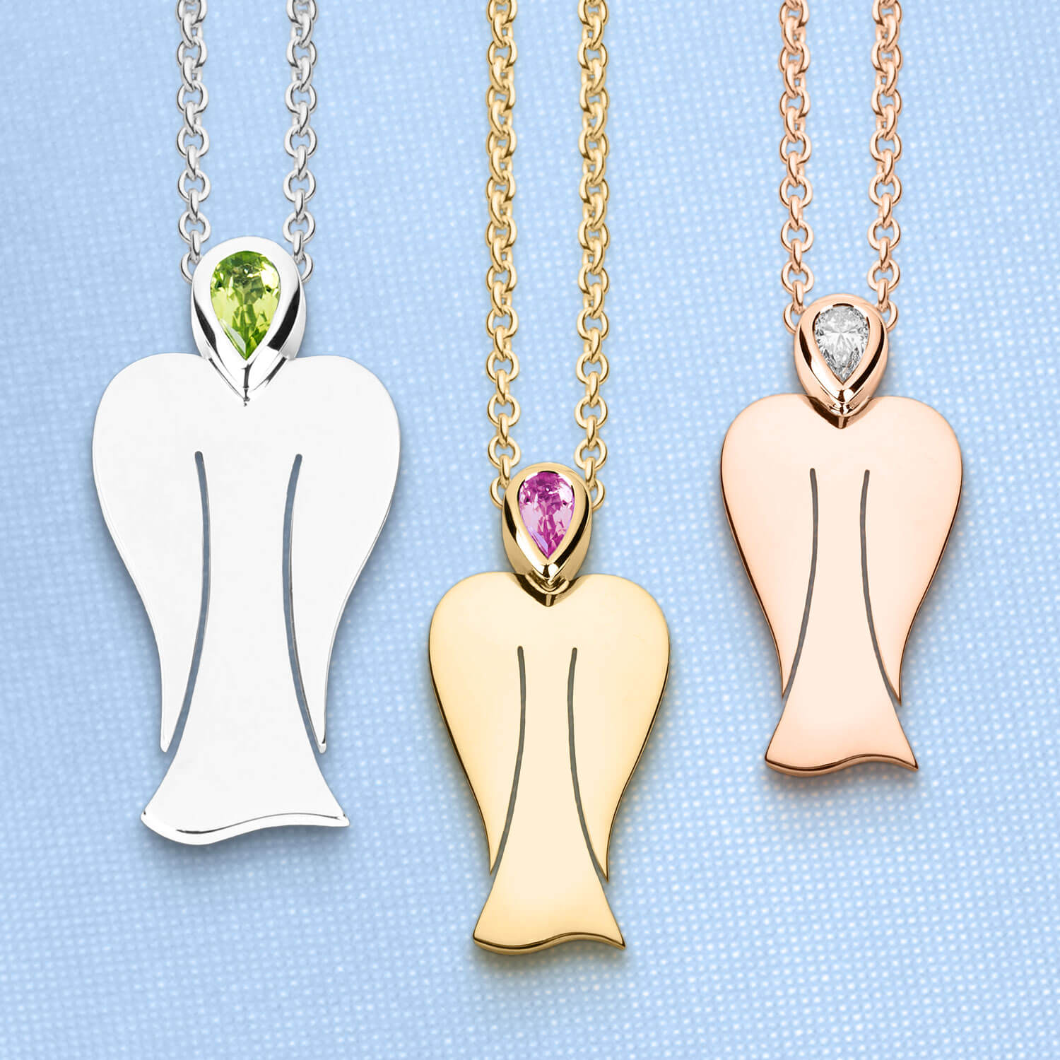 Die MyAngel Anhänger mit Edelsteinen werden in 925er Sterlingsilber oder 18 Karat Gelb-, Rosé- und Weißgold gefertigt. Sie sind mit sorgfältig ausgewählten Edelsteinen verziert und in verschiedenen Größen erhältlich.